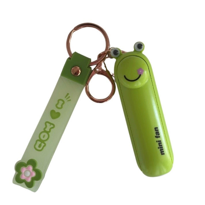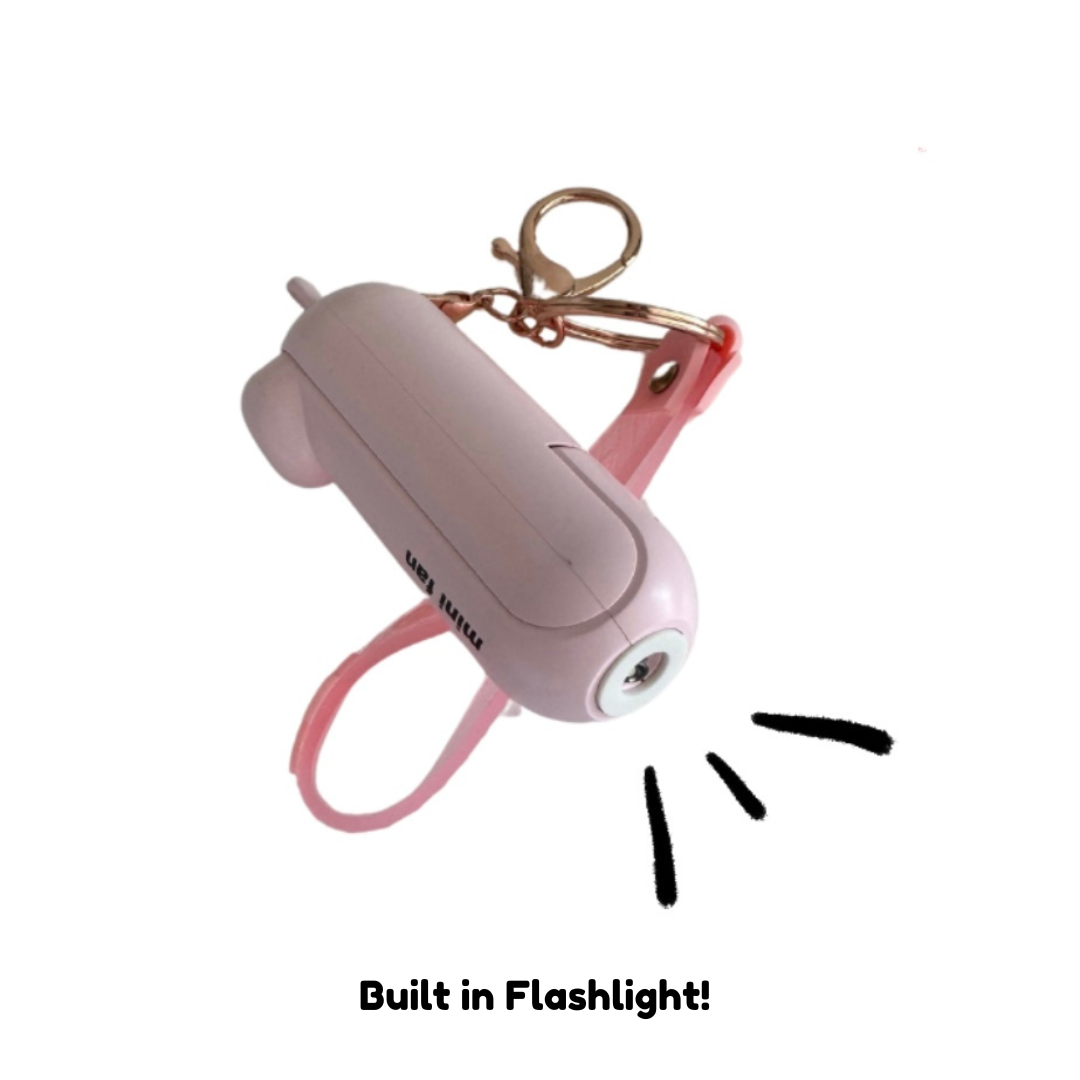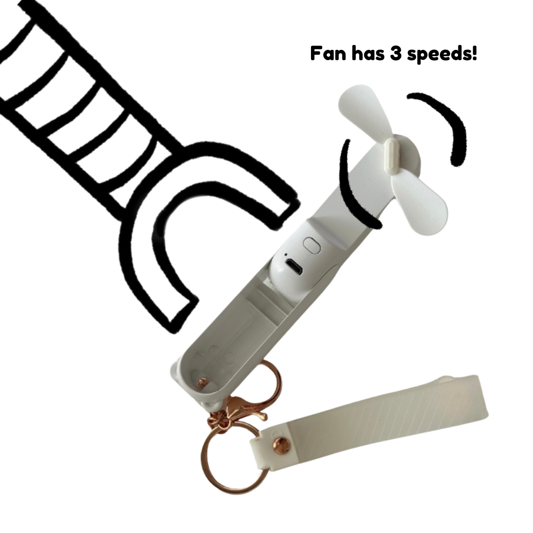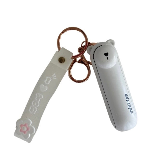 Beat the heat with this adorably cool Mini Fan, smaller than your phone but packs a punch! Comes with a built-in flashlight and a Keychain. With its cute design and multi-functional use it's perfect for any hot day!